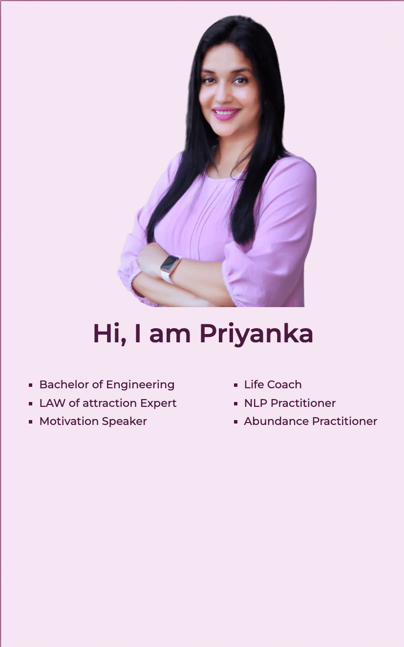 I Am Priyanka Abhijit And I Help People Transform Into Their Best Version To Create The Life Of Their Dreams and Achieve 360 Degree Happiness.