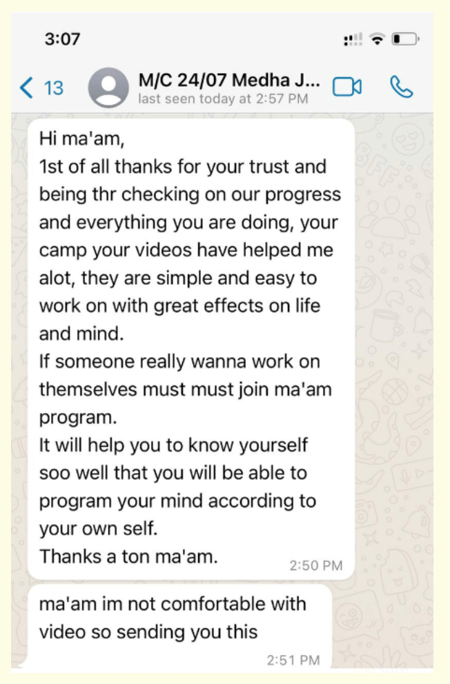 Worked On His Negative Thought Process, Negative Mindset. He Discovered His True Potential After Joining The Course. Nikhil Has Found New Purpose In Life And Is Very Happy With The Positive Changes In His Life